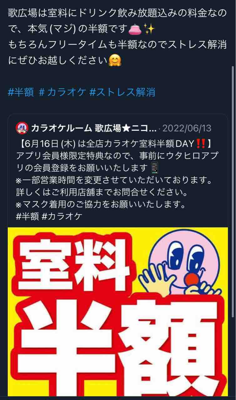 「半額DAY」にタイミングよく来店出来ると、とんでもなく安い価格でカラオケできちゃうのですごくありがたい!